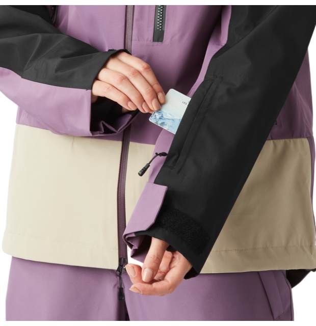 La giacca ha una vestibilità dritta ed è dotata di dettagli pratici come una tasca sul petto, fori con cerniera, cerniere YKK impermeabili, elastico sull'orlo e una tasca per lo skipass. Anche le tasche per le mani sono dotate di cerniere impermeabili, così potrai riporre i tuoi effetti personali in tutta sicurezza.